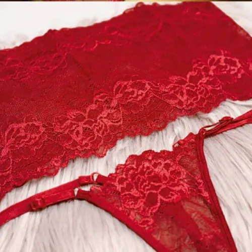 Conjunto muy delicado confeccionado en puntilla elástica, que se adapta a las curvas y realza los volúmenes de forma sensual.