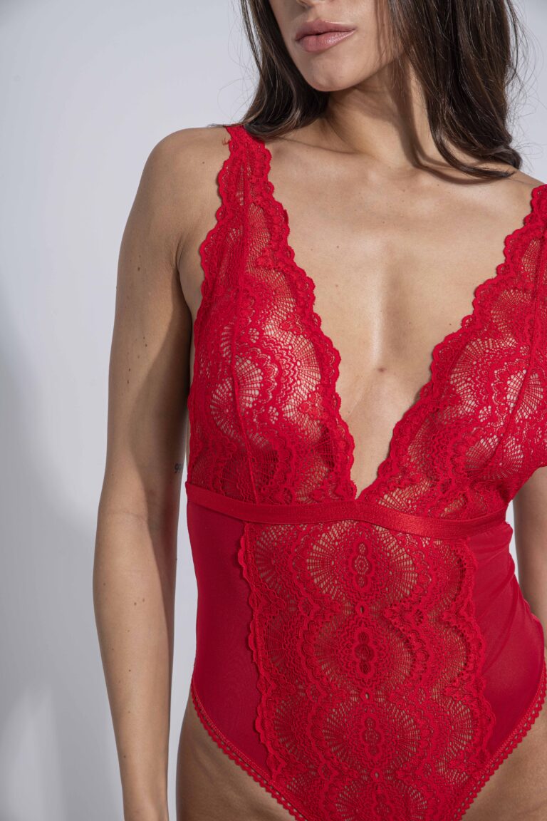 Body sexy combinado en puntilla, microtull y microfibra. Con recortes al frente y sin forro en tazas. Viene con broche en la entrepierna.