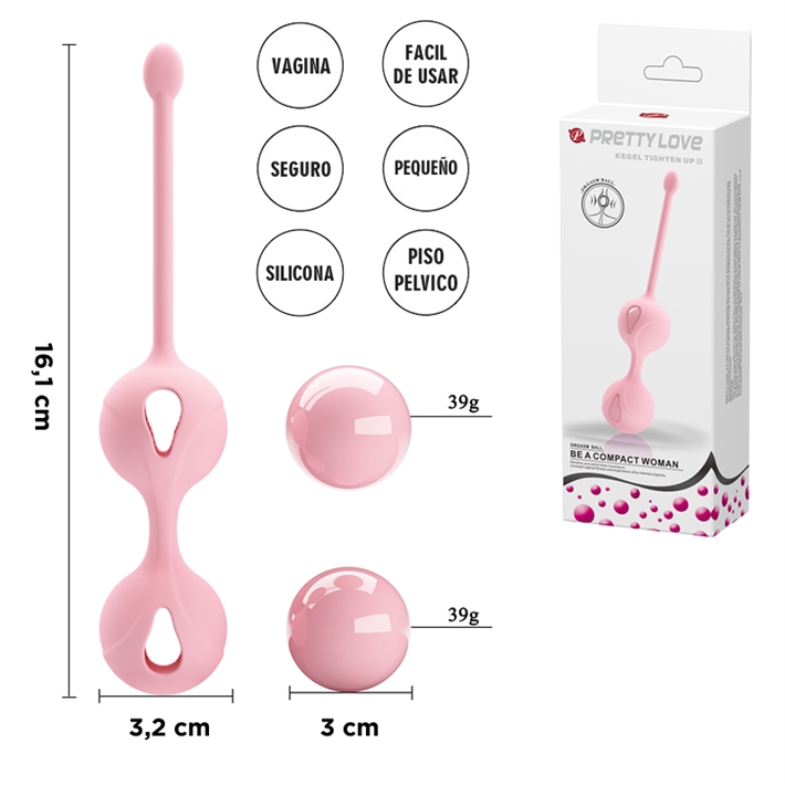 Son dispositivos de silicona diseñados para fortalecer el suelo pélvico mediante pesas internas móviles (aprox. 39g cada una) que generan estimulación. Ayudan a mejorar la tonicidad vaginal, prevenir pérdidas de orina y aumentar el placer sexual. Se insertan con la cola de silicona hacia afuera.