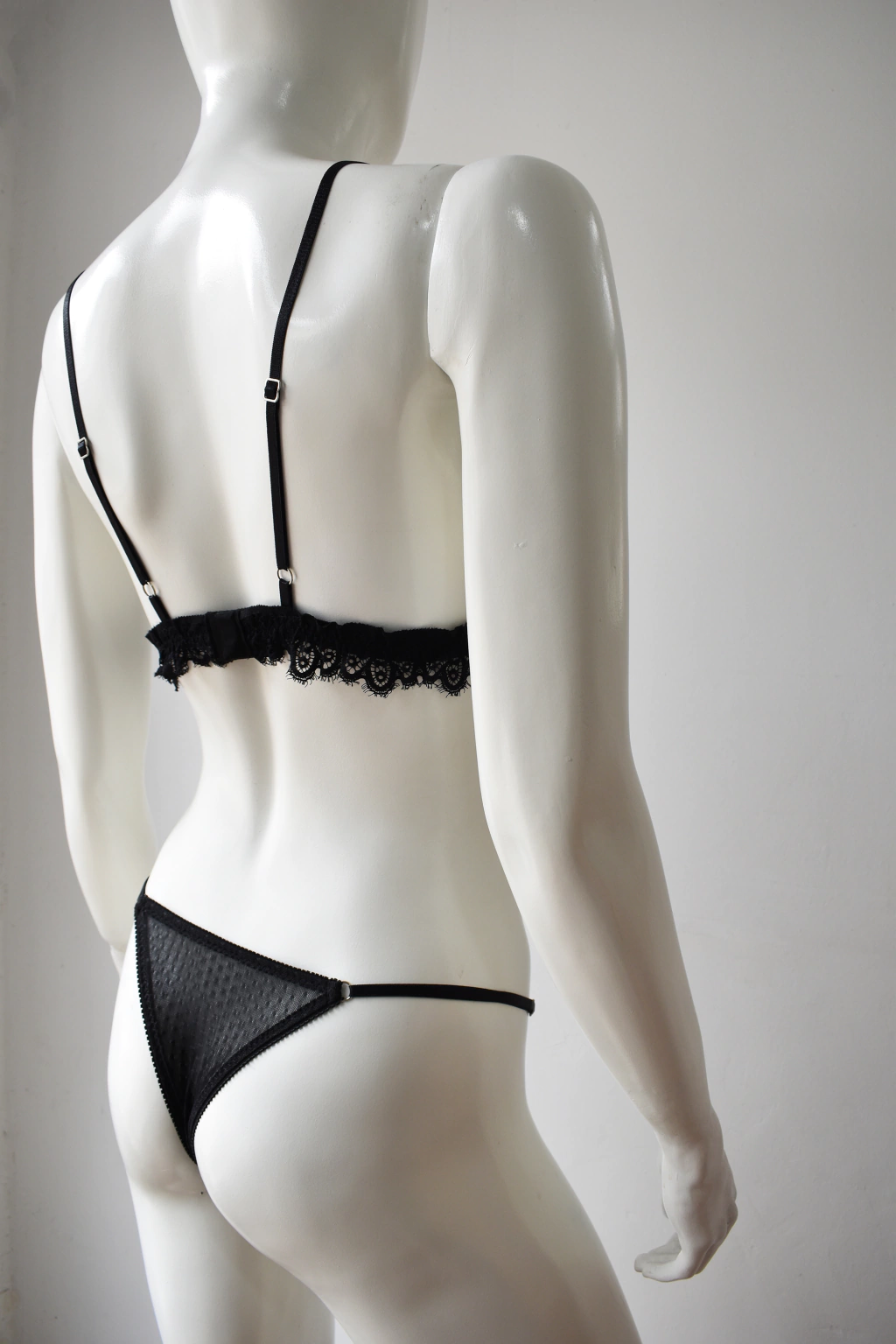 Conjunto realizado en puntilla elastizada bicolor en tono blanco y negro